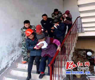 图:在镇敬老院进行紧急疏散演练