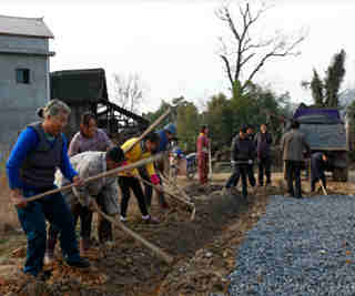 1月23日至25日,关峡苗族乡珠玉村30多位村民义务维护组道,受到过往行人的称赞。2015年下半年以来,我县降雨较多,村组道路长期受雨水浸泡,车辆通行后,道路变得坑坑洼洼、泥泞不堪,给村民的生产生活带来严重的影响。面对组道通行困难的状况,该村几位老人倡议,利用冬闲天气晴好的机会,对组道进行义务维护。倡议发出后,得到了绝大多数村民的响应。3天时间,共维护组道560多米。(龙宪智)
