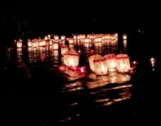 ★七夕荷花灯会游客花园阁放灯祈福
