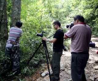 图:摄制组在拍摄国家一级保护树种伯乐树