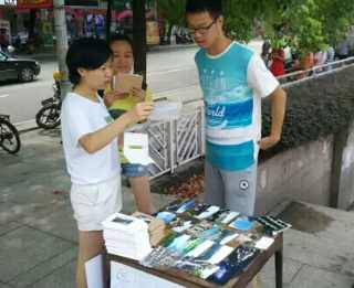 8月11日,绥宁大学生杨一能在县城绿洲文化广场摆摊免费送明信片,用微薄之力宣传家乡美。19岁的杨一能是绥宁人,2012年毕业于民族中学,现就读于上海财经大学。去年进入大学后,他有了很多时间和想法,趁着寒暑假,挎着相机走了绥宁县城、寨市古镇、黄桑,以及很多无名却值得一看的小角落。他用拍下来的照片,做成了明信片送给认识和不认识的绥宁人,希望借他们的手,寄往不同的地方,让更多的人知道绥宁美。(杨汐)