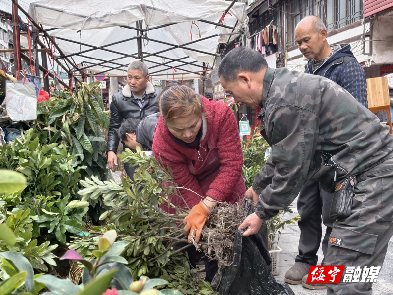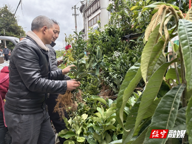 绥宁新闻网讯(记者 孙芳华 王琼)人勤春来早,春耕正当时。2月27日,绥宁县城老街苗木市场人头攒动、春意盎然,村民们抢抓春季栽种黄金时节,纷纷前来选购苗木,田间地头即将掀起新一轮栽种热潮。