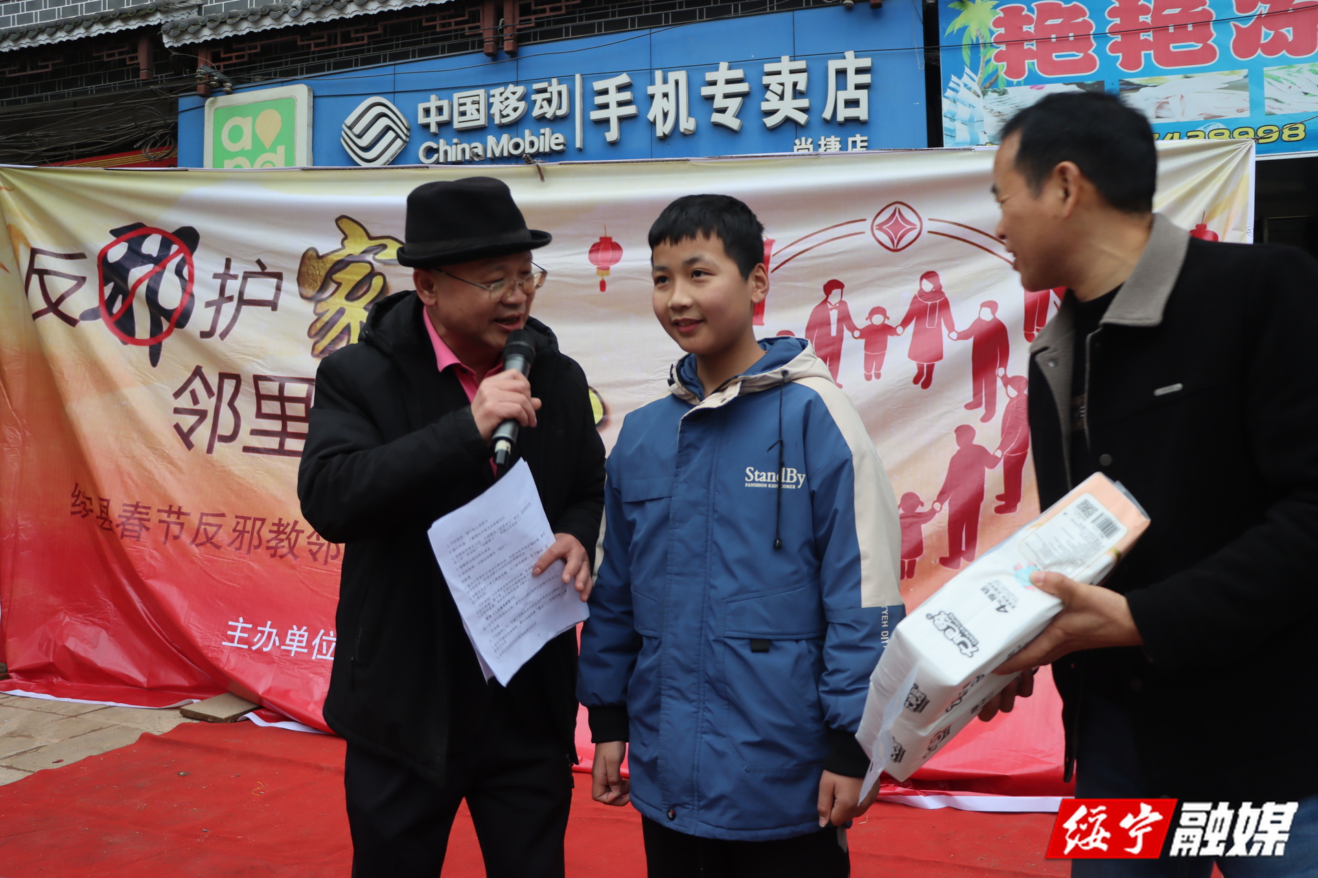 本次宣传教育活动采取“文艺搭台、宣传唱戏、互动增趣”的方式,实现寓教于乐、润物无声。在“‘反邪护家 邻里同心’绥宁县春节反邪教邻里文化节”答题活动中,设计穿插了“反邪教知识知多少”有奖竞答环节,题目涵盖邪教特征识别、危害认知、法律法规、应对方法等内容,群众现场抢答,答对即可领取抽纸、纸杯等实用宣传礼品,极大地调动了参与积极性。同时,工作人员和志愿者深入武阳镇中心广场和寨市苗族侗族乡游客中心等人群聚集地进行面对面宣传,还设立集中宣传点,主动向过往群众介绍什么是邪教,常见邪教组织及识别方法、邪教的严重危害,典型案例剖析、国家相关法律法规、如何防范和抵制邪教、遇到邪教活动怎么办、举报途径等。现场活动结束后,还利用抖音和微信视频号等线上平台持续开展宣传,并在“县乡村组”四级微信群发布转发反邪教工作内容,巩固宣传效果。