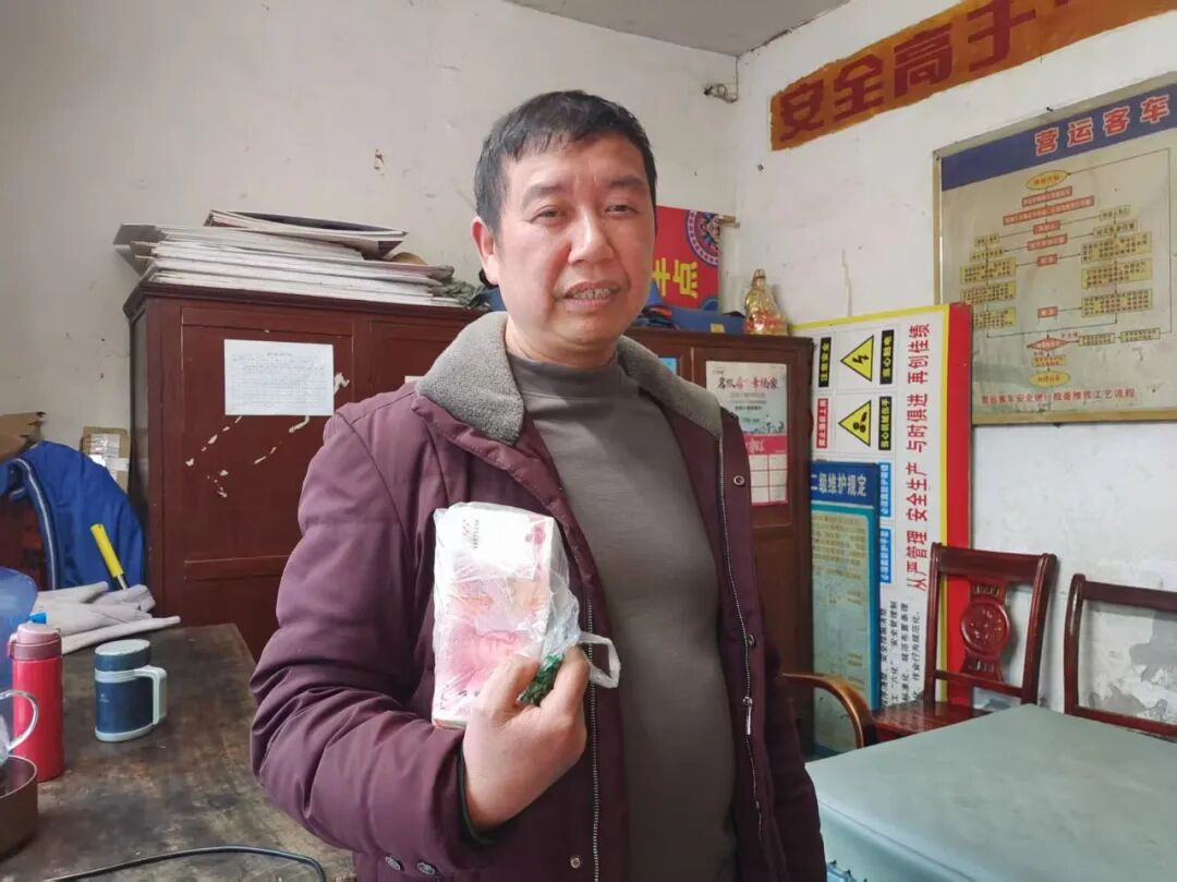 近日,绥宁县绿洲公交公司8路公交车驾驶员申玉喜收班时在车厢内捡到一个装有现金及少量腊肠的手提袋,立刻拨打110报警,与此同时,遗失财物的失主杨女士在发现财物丢失后也立即报了警。