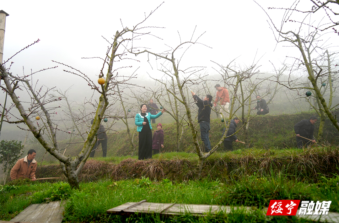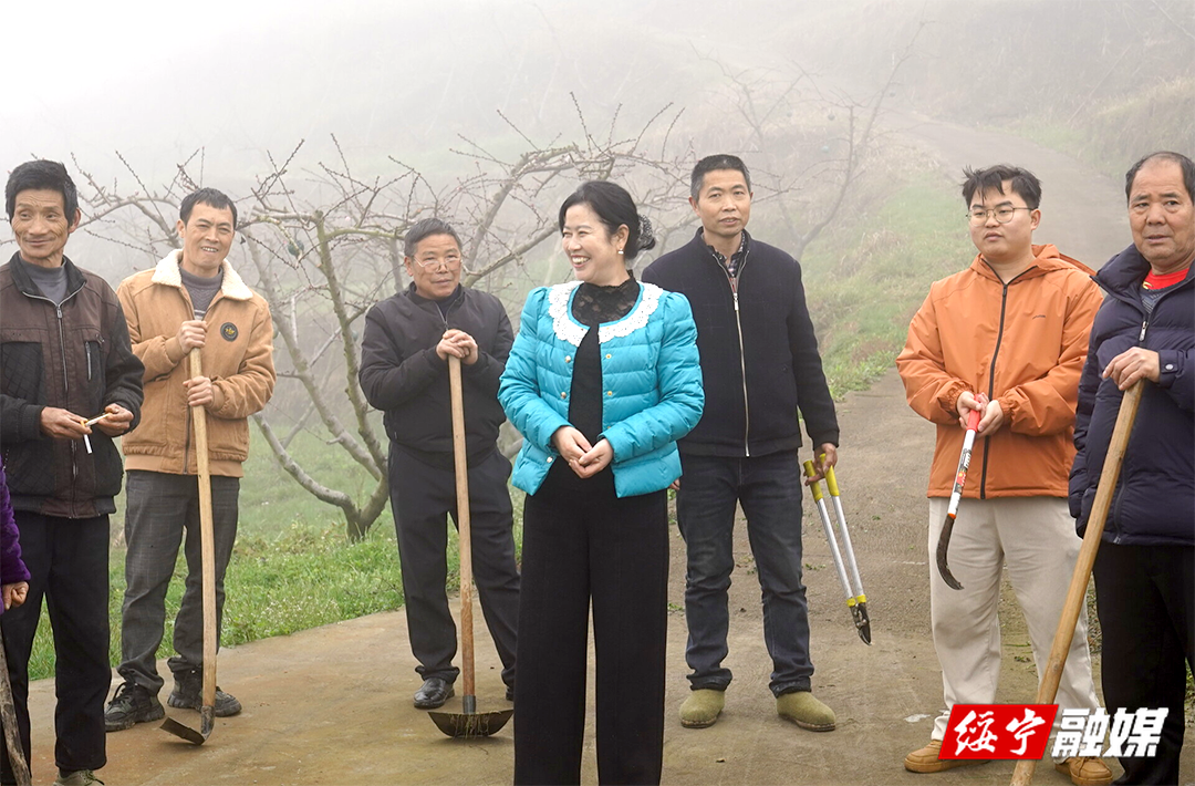 走进杨家寨村的蟠桃园,浓雾缭绕洒在枝桠间,桃树吐露新芽。胡美娥牵头创办的绥宁县妇女种养专业合作社里,村民们忙着修枝、培土、铲草,田间地头一派忙碌景象,大家围着胡美娥,边干活边听她讲两会的新鲜事。她结合参会所见所闻,用身边事解读国家政策,把政府工作报告中关于乡村振兴、特色产业、民生保障等内容,转化为苗乡群众听得明白的发展思路。大家围在一起,你一言我一语,现场气氛热烈。河口苗族乡杨家寨村村民周霖说道:“胡代表的宣讲很实在、很接地气,把国家政策讲得明明白白。我们听了之后干劲更足了,接下来要把产业做大做强,带领更多乡亲一起增收致富。”