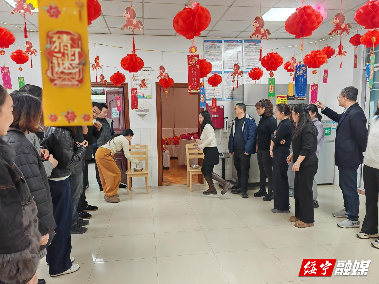 活动在公司三楼食堂拉开帷幕,现场鲜红灯笼高高挂、马年彩带灯谜随风轻摆,布置得温馨而喜庆。本次活动结合元宵节历史文化,融入了“赏花灯、猜灯谜、吃汤圆”三大习俗。伴随着现场品尝鲜煮甜酒元宵,活动同时开始,首先是富含文化而益智的猜灯谜环节,灯谜内容丰富多样,既有通俗易懂的趣味谜题,也有考验历史文化知识的益智难题,吸引了众多员工及家属积极参与。每当解开一个谜底,不仅能得到精美小礼品,更能获得解开谜题的成就感,现场气氛热烈而融洽。最激动人心的元宵接力赛环节,10人一组参赛者用筷子夹“元宵”(乒乓球)单脚从起点到终点接力比赛。