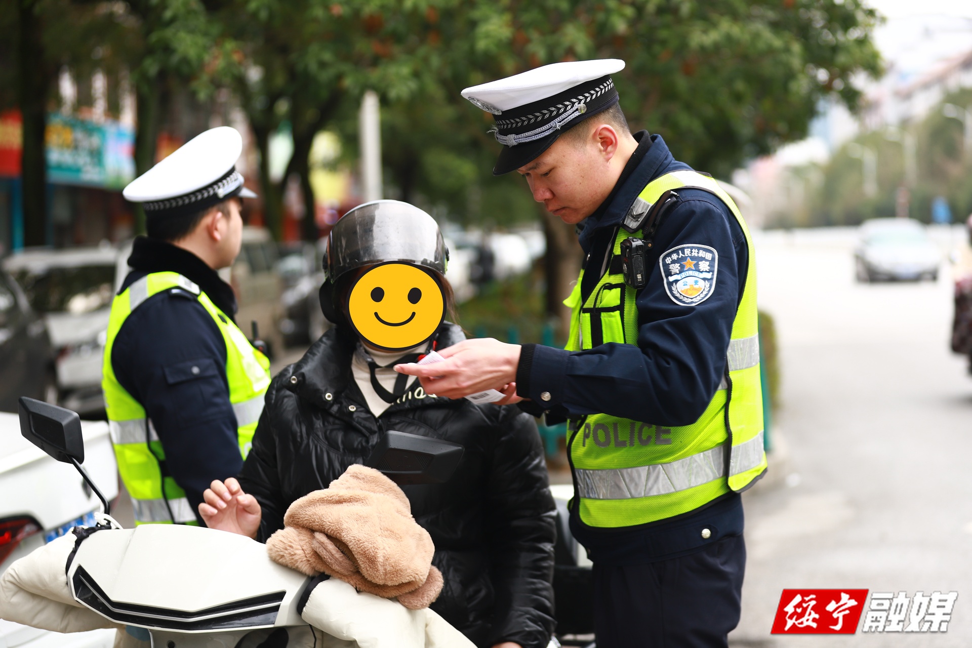 该大队坚持问题导向,结合辖区摩电出行规律,科学研判整治重点,优化勤务部署,采取“定点值守+动态巡查”“白+黑”无缝衔接的立体化管控模式,将整治力量集中投放在上下学、上下班等重点时段,在县城主要街道、学校周边、交通枢纽、乡镇集市及城乡接合部等重点区域,合理设置固定执勤点,并组建机动巡逻队开展高频次巡查,实现整治全域覆盖、不留死角。行动中,执勤民警聚焦摩电驾乘人员不佩戴安全头盔这一核心问题,实行“即查即纠、现场教育”方式,同时对其他违法行为坚持“零容忍”,形成严查、严管、严治的高压态势,有效震慑了摩电车辆各类交通违法行为。另外,该大队始终坚持“处罚与教育并重、执法与服务同行”的原则,摒弃“一罚了之”的简单执法模式,注重人性化执法,让交通安全法律、法规入脑入心。同时,通过发放宣传手册、播放事故警示视频、村社微信群推送知识、农村“大喇叭”播报等多种形式,广泛宣传摩电安全出行常识,结合全县少数民族聚居特点,创作具有当地民族特色的宣传音视频,用家乡话传递安全理念,让交通安全知识走进千家万户,切实提升群众交通安全意识和自我防护能力。