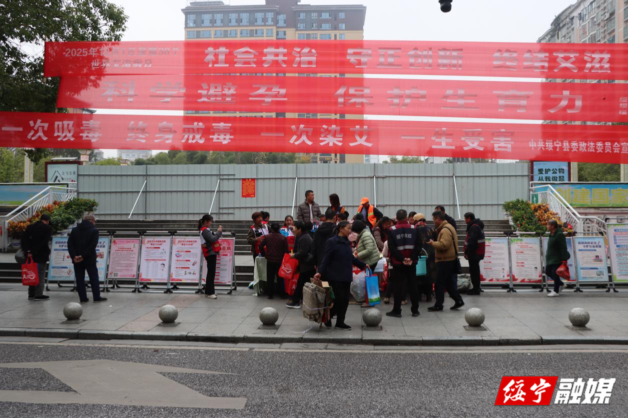 绥宁新闻网讯(通讯员 向志益 伍秋英)为深入推进禁毒人民战争,提升广大市民群众对新型毒品替代物——“非列管物质”的认知与防范能力,并紧密衔接艾滋病防治宣传,12月1日,绥宁县委政法委联合县疾控中心、县禁毒协会等多部门,在县城绿洲广场入口与法治文化长廊等人流密集处,组织举办了一场贴近群众、内容丰富的涉替来他明等非列管物质违法犯罪集中打击整治专项行动暨“世界艾滋病日”禁毒防艾主题宣传活动。