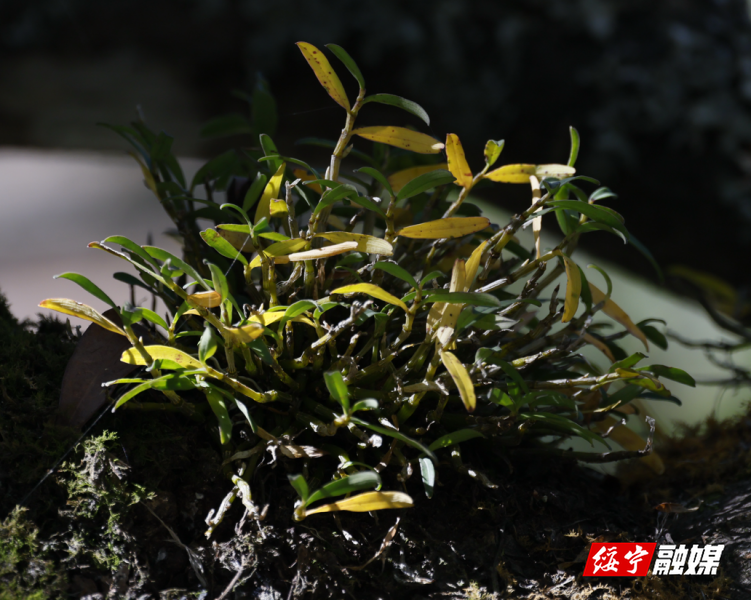 河南石斛是兰科石斛属珍稀濒危植物,被列入《国家重点保护野生植物名录》(2021年版)二级保护范畴,对生长环境的气候、湿度、植被覆盖率等条件要求极为苛刻,其野生种群的分布与存活状况,是反映区域生态系统完整性和稳定性的重要指标。此次发现的河南石斛依附于刨花润楠树干生长,叶片翠绿、茎秆健壮,数丛植株错落分布,展现出良好的生长态势,印证了黄桑片区生态环境的优越性。